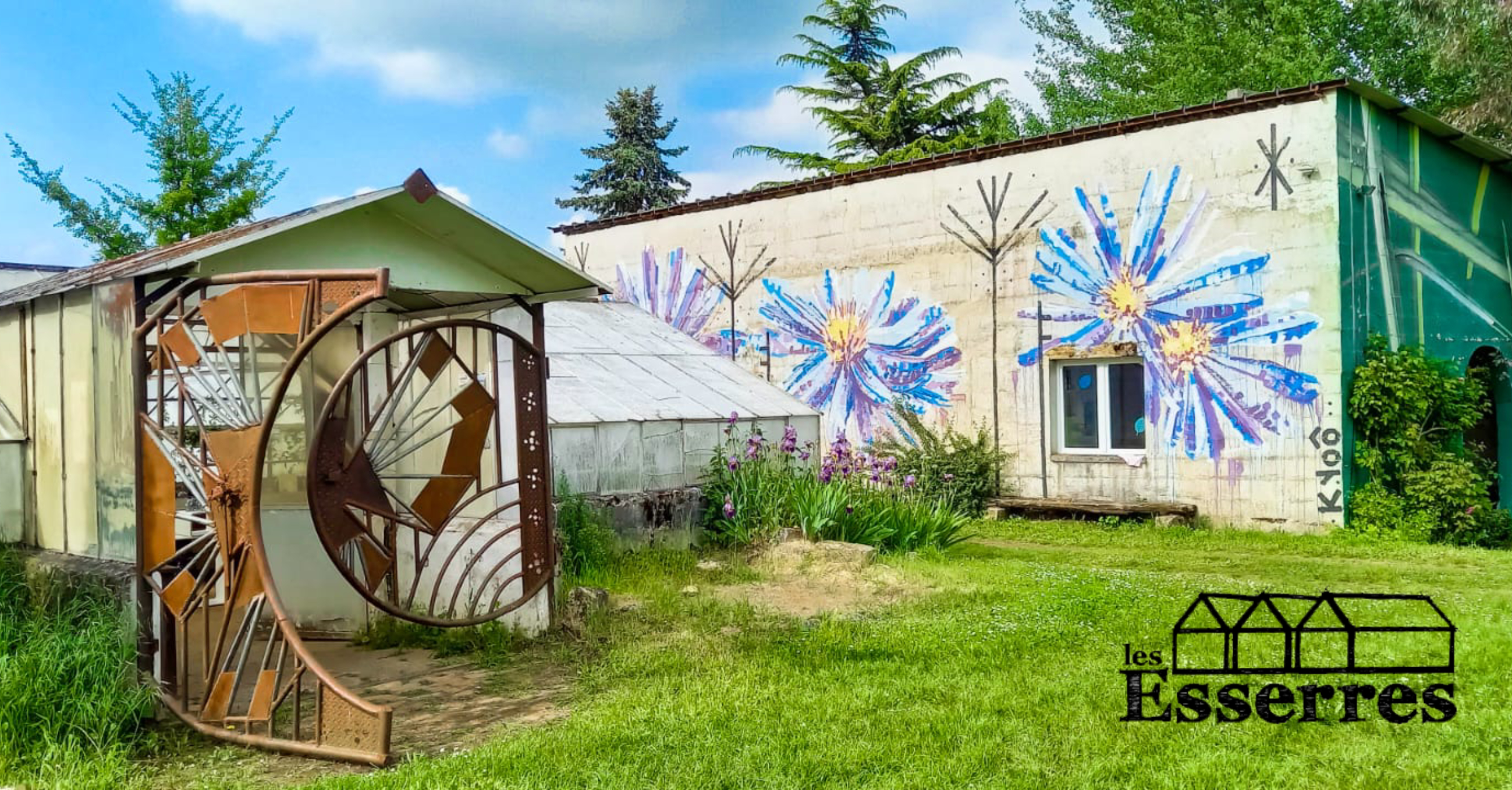 Les Esserres cultivent autant les plantes que les œuvres d’art sur cette ancienne friche horticole réaménagée en espace multiculturel. Dans les 3 anciennes serres, l’art se mêle au végétal, grimpe le long des châssis vitrés, se déroule dans les allées potagères et les plates-bandes ornementales.