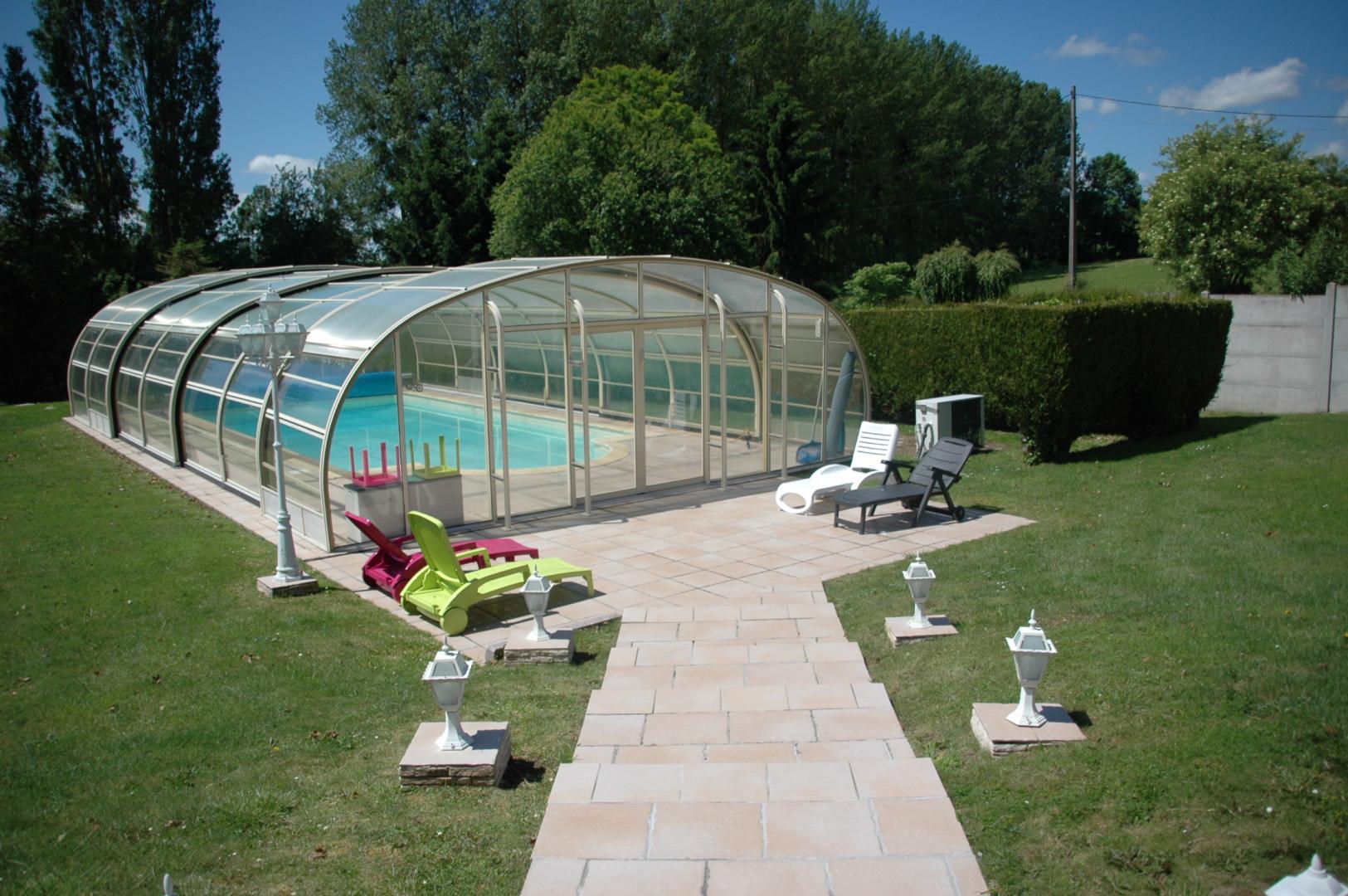 A 1 heure de Paris,maison indépendante de 297 m² (sur 2 niveaux) avec piscine privative couverte chauffée de 12x5 mètres (ouverte du 1er avril au 10 novembre), dans un parc de 7 800 m² (entièrement clôturé) avec terrasse (barbecue, salon de jardin, transats) et étang privé sécurisé, pour pêcheurs passionnés. Rez-de-chaussée : Grande pièce à vivre cathédrale avec cheminée (forfait de 50€ par semaine/weekend si utilisation du bois). Cuisine équipée (lave-vaisselle, four...). 3 chambres (chacune 1 lit 160 avec salles de bains privatives). A l'étage : 2 chambres (chacune 1 lit 160). Salle de bains et wc Billard américain, ping-pong, baby-foot à disposition. Buanderie attenante (lave-linge,sèche-linge). Balançoire. Materiel bébé (2 lits bébé, une chaise haute, un réhausseur,...). Stationnement sur la propriété. Supplément forfait de charges journalier : 46 €. Attention : pour le bien être et la sérénité de tous, les fêtes et le tapage sont interdits dans ce gîte.