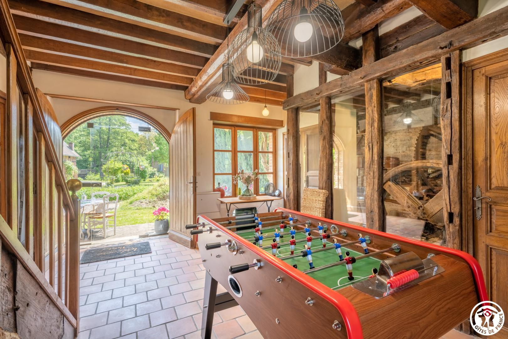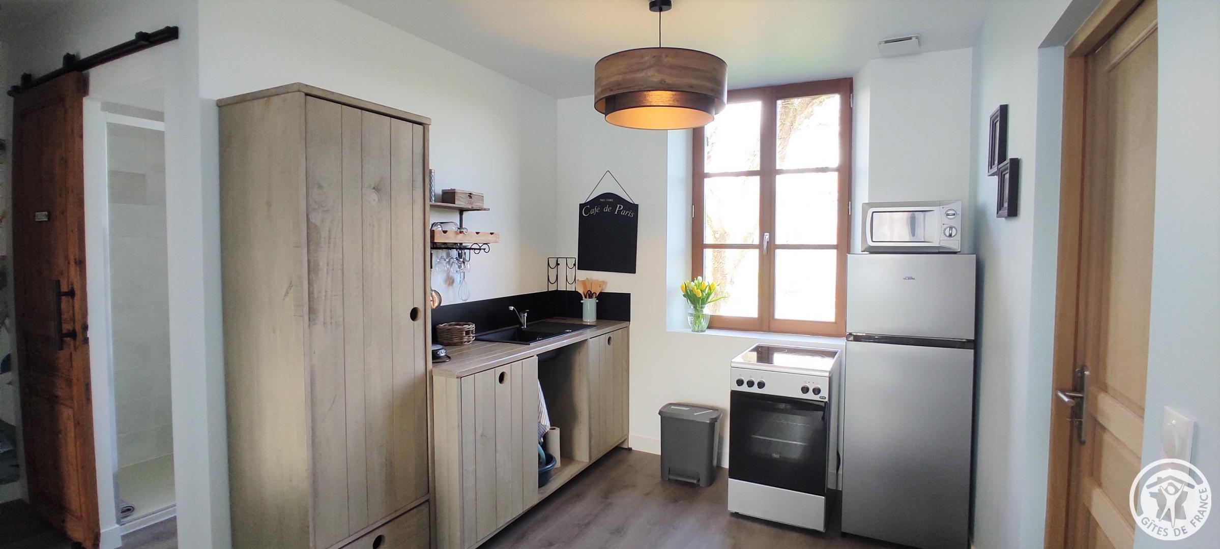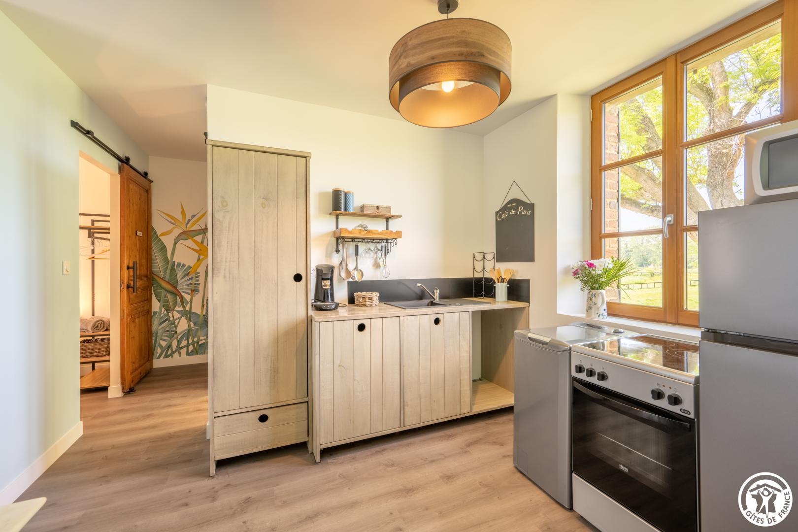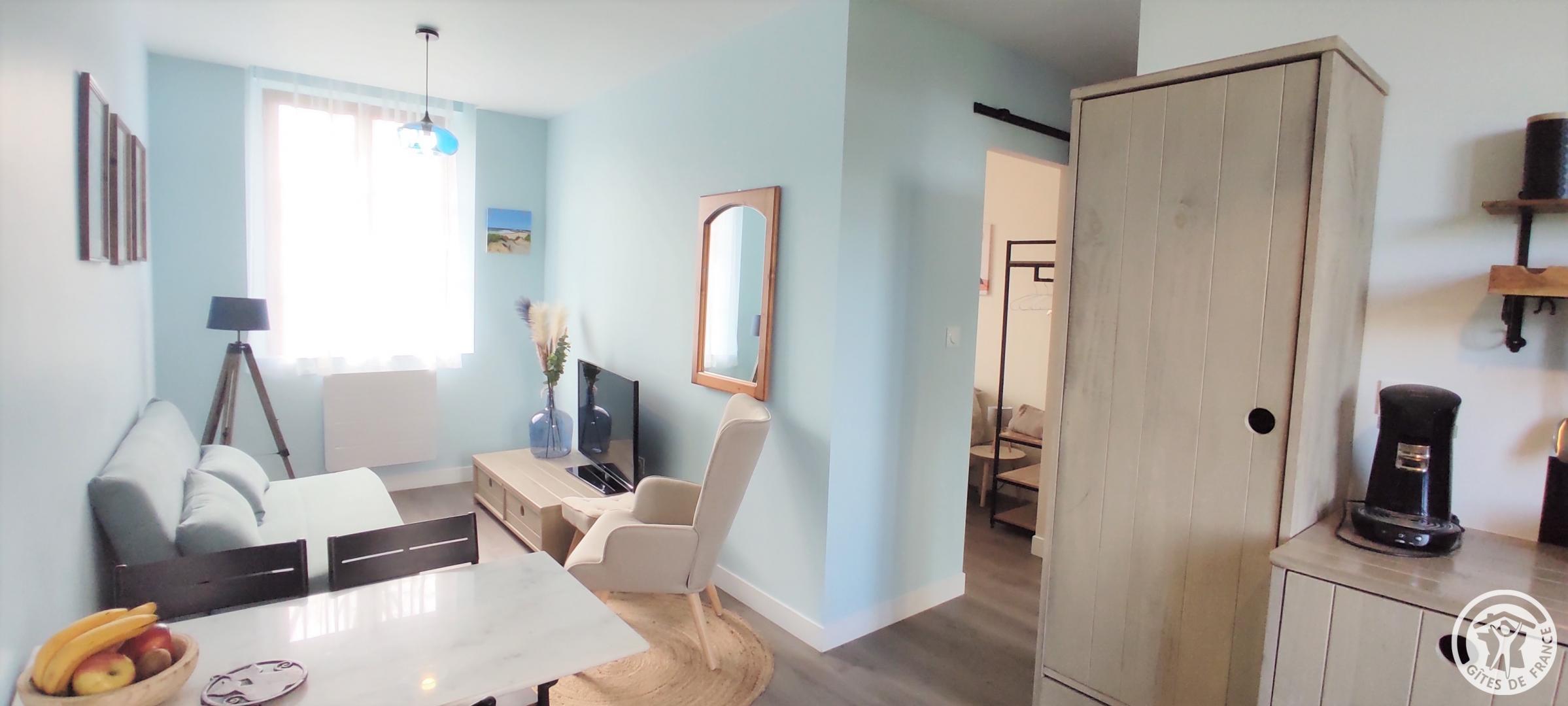 Appartement de 30 m² situé au 1er étage de la maison des propriétaires, situé en bordure de Thérain. Vous entrez au rez-de chaussée dans une salle de jeux avec baby-foot et vue sur l'ancienne roue du moulin. Le gite se situe à l'étage et profite d'une vue traversante sur la rivière Thérain. Vous disposez d' une pièce de vie avec cuisine équipée (micro-onde, cuisinière avec four et plaque de cuisson, réfrigérateur, congélateur, cafetière, grille pain et bouilloire, lave-linge), un salon avec canapé convertible, TV (110 cm), une petite chambre pour 2 personnes (lit 140x190 cm), une salle d'eau (douche 0,85 x 1,18 cm) avec Wc, meuble vasque (sèche cheveux). Dans le jardin ( commun aux propriétaires) vous profiterez du bruit de l'eau en vous installant sur la terrasse avec salon de jardin, barbecue. Stationnement dans la cour devant le gite. Lits faits à votre arrivée, Linge de maison, de toilette, électricité, chauffage, ménage de fin de séjour compris. Internet (fibre)