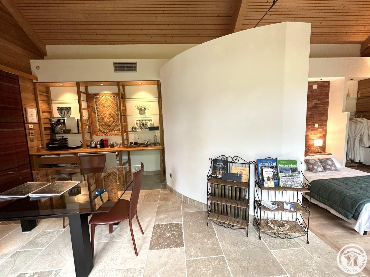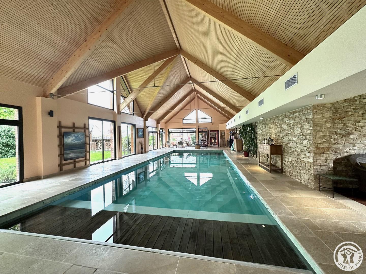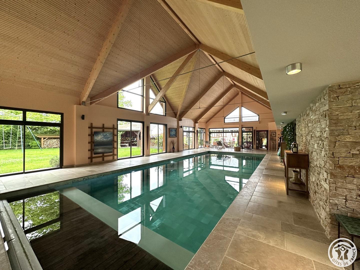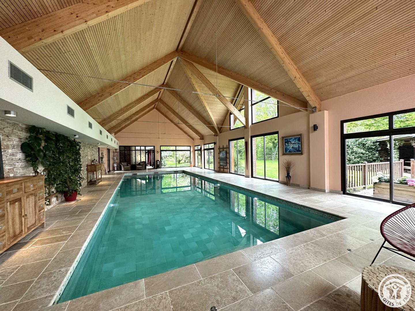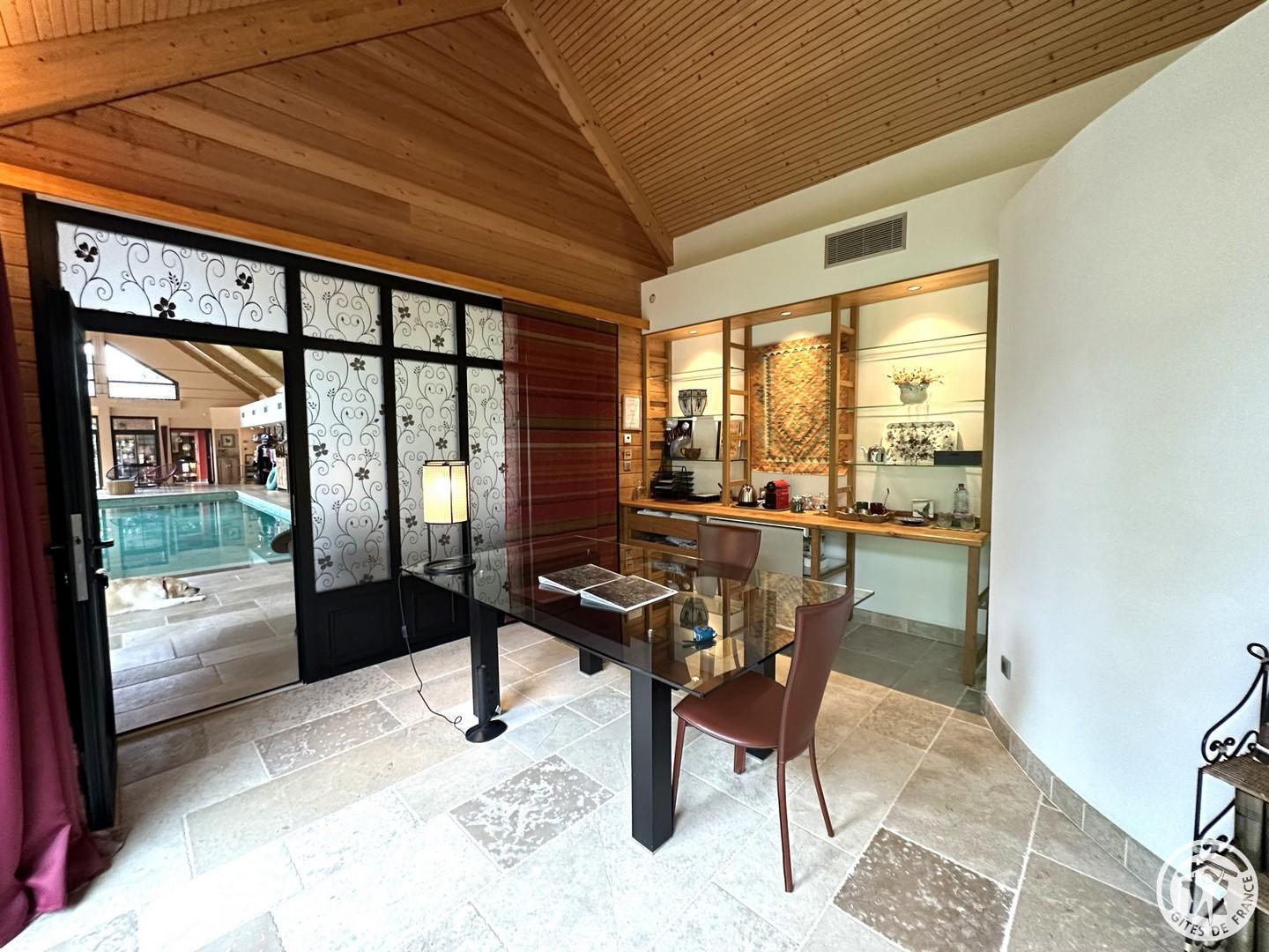 L'Olivier est une maison d'hôtes parfaite pour passer un week-end de détente à 2. Vous profiterez de trois espaces privatifs : une chambre pour 2 personnes (lit 160x200cm) comprenant une salle de bain et un espace bureau, un salon d'été et un salon d'hiver. La chambre immergée en pleine nature donne directement sur la grande piscine intérieure chauffée à 32°C (dimension : 5m x 12m). La piscine est partagée avec le propriétaire. Vous disposerez d'une machine expresso, bouilloire, thé et café, une TV, wifi et peignoirs. Vous pourrez réserver en plus de votre séjour, des massages prodigués par une naturopathe (réflexologie plantaire, massage bien être). Les petits déjeuners sont servis dans le grand salon d'été ou dans un petit salon d'hiver chaleureux adjacent à la piscine. Cette maison d'hôtes est déconseillée pour le séjour des enfants du fait de la configuration particulière des lieux (proximité de la piscine) malgré un système de sécurité aux normes.