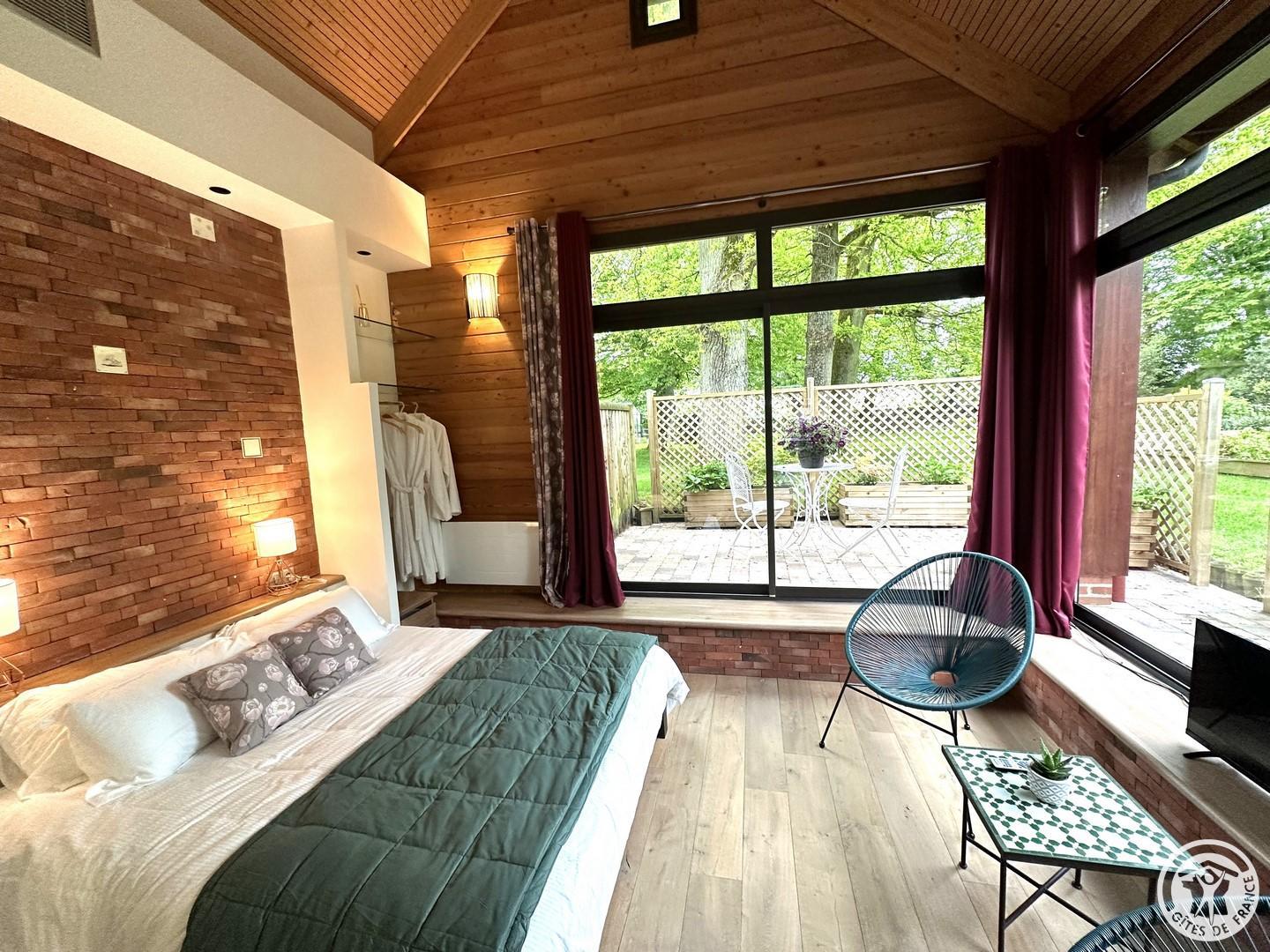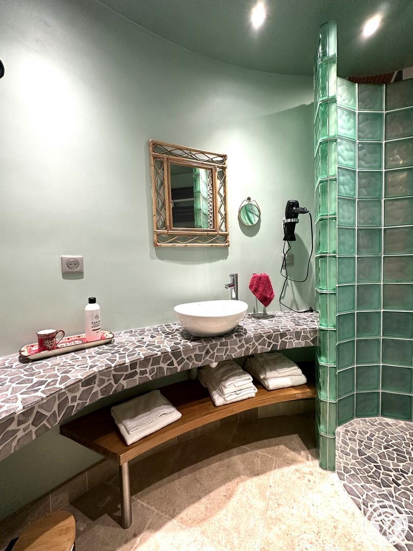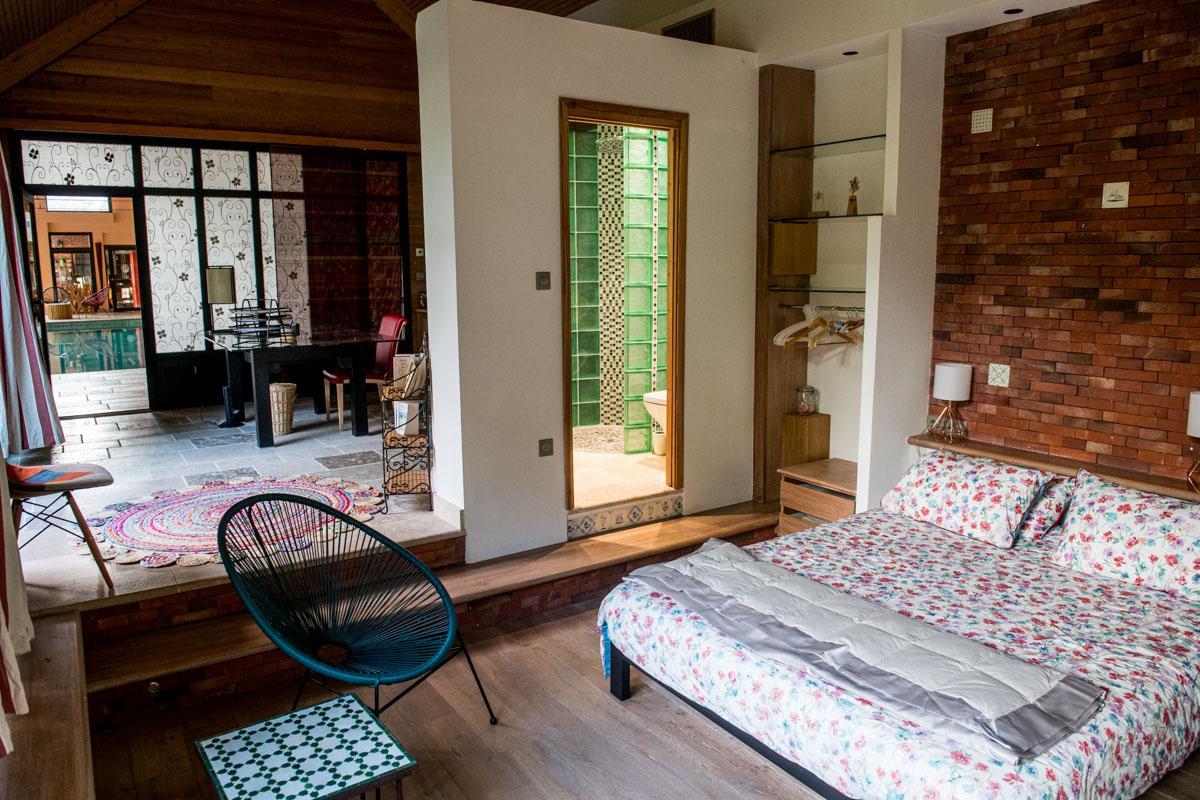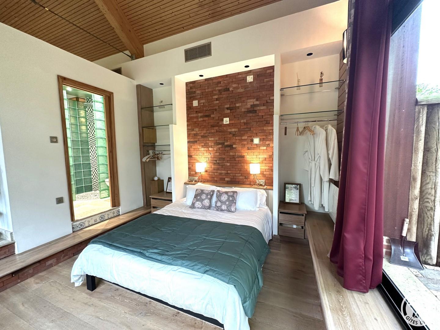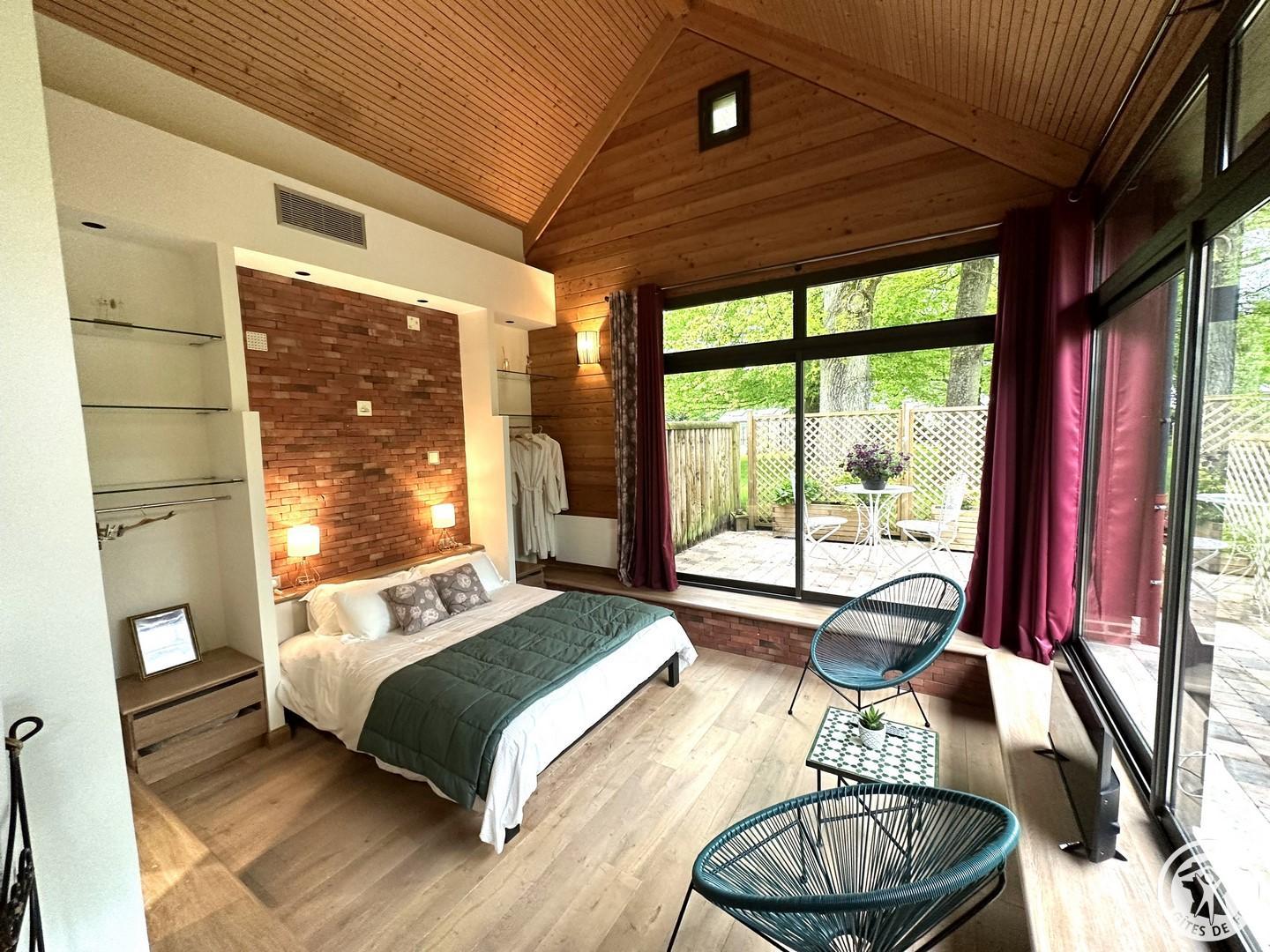 L'Olivier est une maison d'hôtes parfaite pour passer un week-end de détente à 2. Vous profiterez de trois espaces privatifs : une chambre pour 2 personnes (lit 160x200cm) comprenant une salle de bain et un espace bureau, un salon d'été et un salon d'hiver. La chambre immergée en pleine nature donne directement sur la grande piscine intérieure chauffée à 32°C (dimension : 5m x 12m). La piscine est partagée avec le propriétaire. Vous disposerez d'une machine expresso, bouilloire, thé et café, une TV, wifi et peignoirs. Vous pourrez réserver en plus de votre séjour, des massages prodigués par une naturopathe (réflexologie plantaire, massage bien être). Les petits déjeuners sont servis dans le grand salon d'été ou dans un petit salon d'hiver chaleureux adjacent à la piscine. Cette maison d'hôtes est déconseillée pour le séjour des enfants du fait de la configuration particulière des lieux (proximité de la piscine) malgré un système de sécurité aux normes.